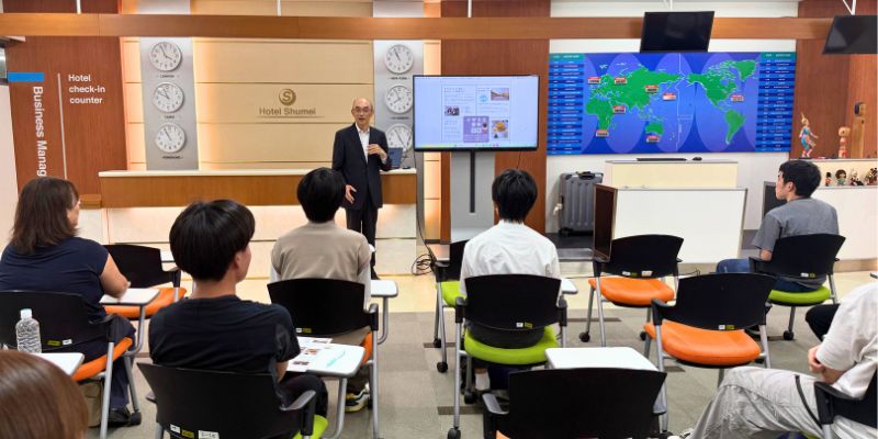 本年度より新たに設置された「簿記会計検定試験サポートデスク」についても紹介があり、簿記検定合格を目指す学生への積極的な支援体制や、会計分野の専門職を志す学生への積極的なキャリア支援など、本学ならではの実践的な取り組みについて説明が行われました。