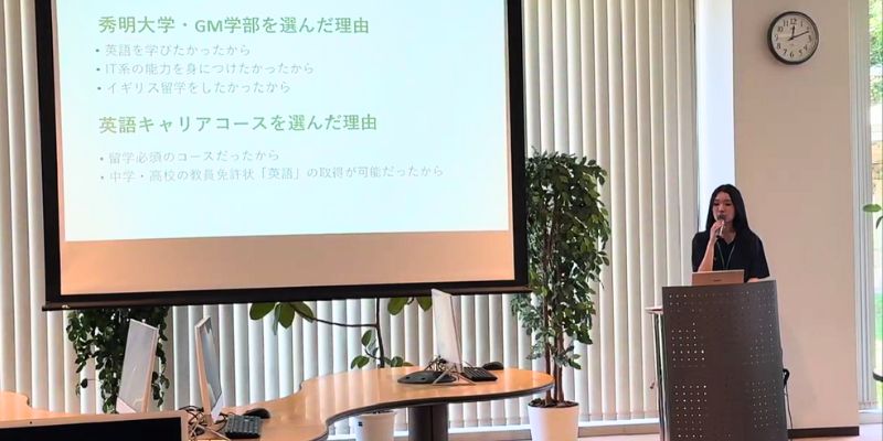 森中祐治学部長による学部紹介からはじまり、学生トークでは、大学生活の様子や授業内容、資格取得への取り組みについて、在学生が自身の体験を交えて紹介。