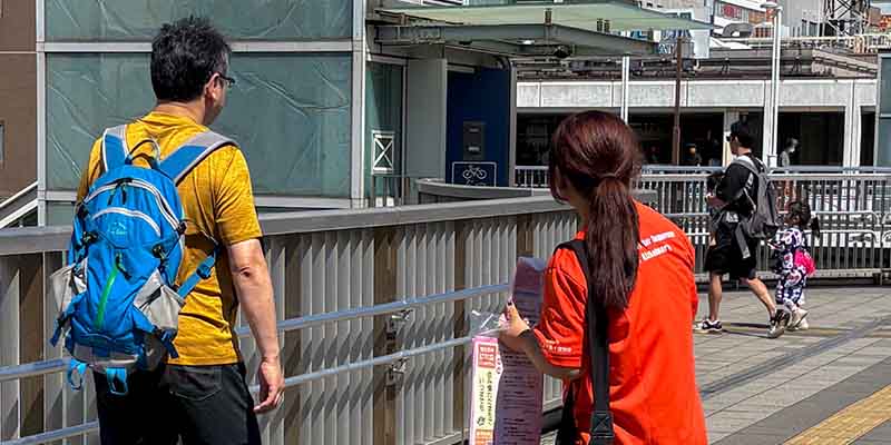 公益社団法人認知症の人と家族の会 千葉県支部の皆様とともに、ボランティアサークル「LIBERTÉ(リベルテ)」のメンバーがJR津田沼駅での啓発活動に参加しました。
