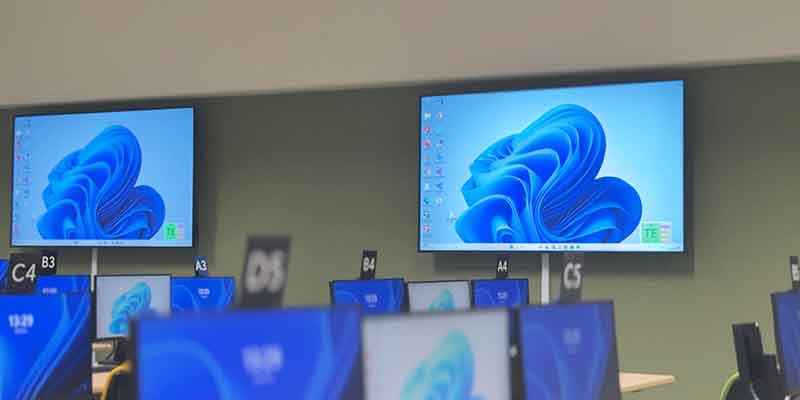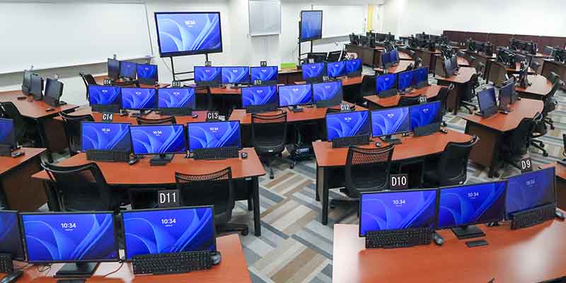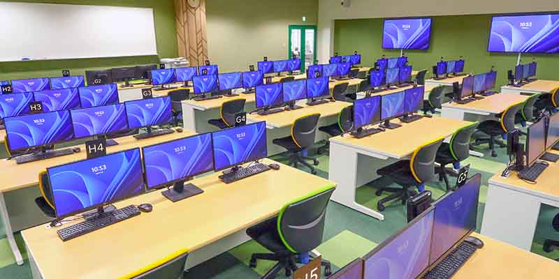コンピュータルーム3は、PCと提示用モニターをリニューアル!PC56台を全て最新のものに変更し、より快適なPC実習環境となりました。