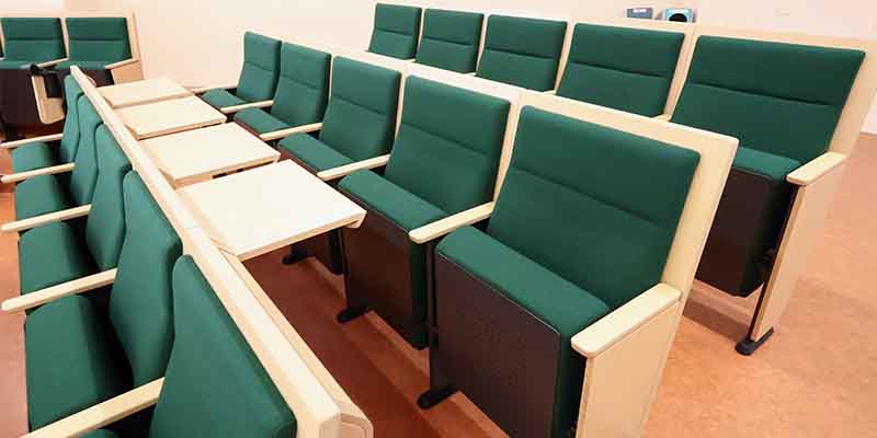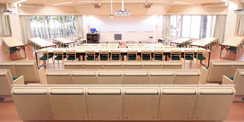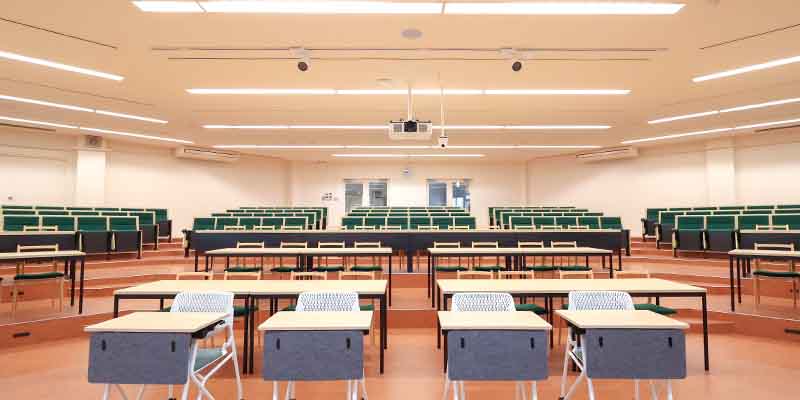 2101教室は、秀明大学カラーの緑を基調とした明るい階段教室になりました。