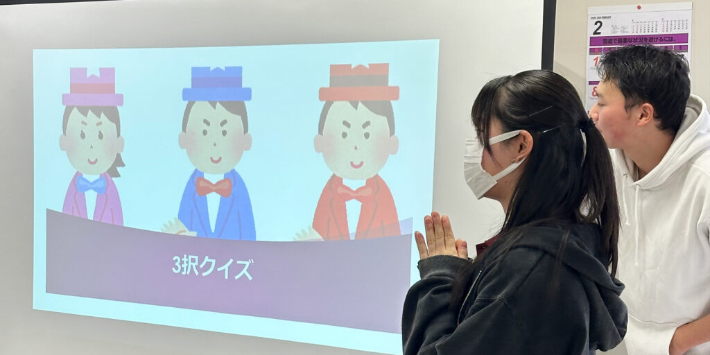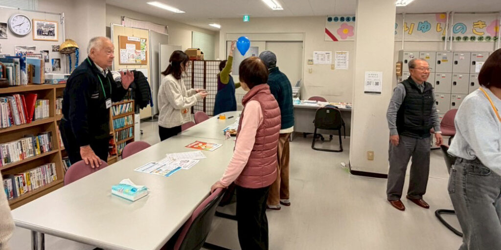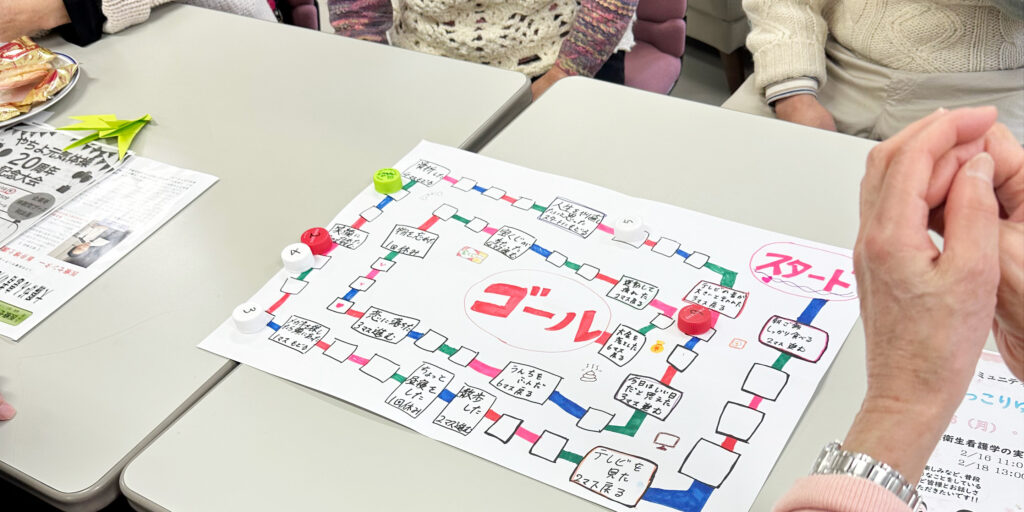 2月7日は雪が降る中での開催となりましたが、学生が手作りした「手作りすごろく」やチーム対抗の風船バレー、さらに3択クイズなど、多彩な企画を実施しました。どのプログラムも参加者同士が自然に関わり合える内容で、会場には寒さを忘れるほどの笑い声が響きました。