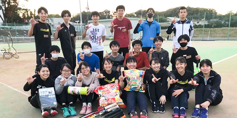 お知らせ 新しいお知らせはありません。 活動日時月・水・木 14:30~18:00、土・日 9:00~12:00 活動場所テニスコート 部員数・男女比20名/男:女=5:2 主な年間行事 前期・後期 校内戦、新入生歓迎会11月 飛翔祭(焼きそば屋を開いています)12月 3年生引退・新体制 主な活動報告 7月・11月 校内戦、新入生歓迎会 部員からのメッセージ 初心者から経験者まで学年問わず楽しく活動しています。 初心者大歓迎です。定期的な練習や試合、そして楽しいイベントを通じて、「仲良く・明るく・元気に」一緒にテニスをやりましょう。興味のある方は、ぜひ一度見学にお越しください。皆さんと一緒にテニスを楽しめる日を楽しみにしています!